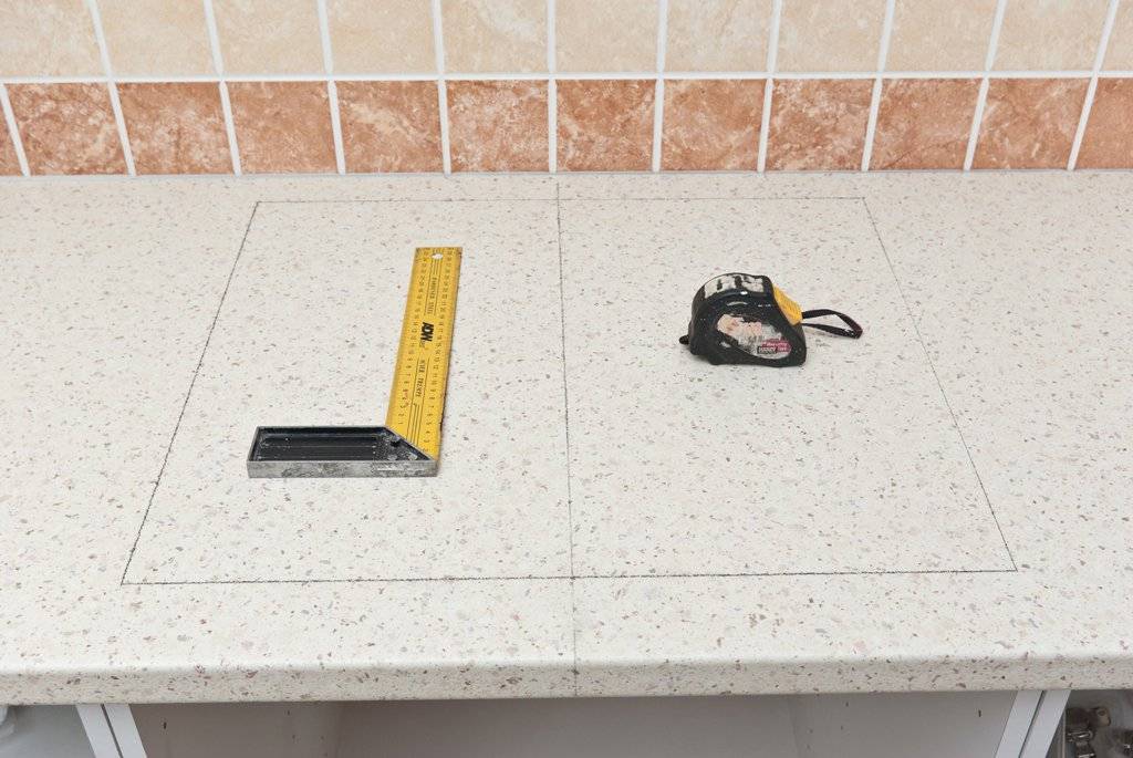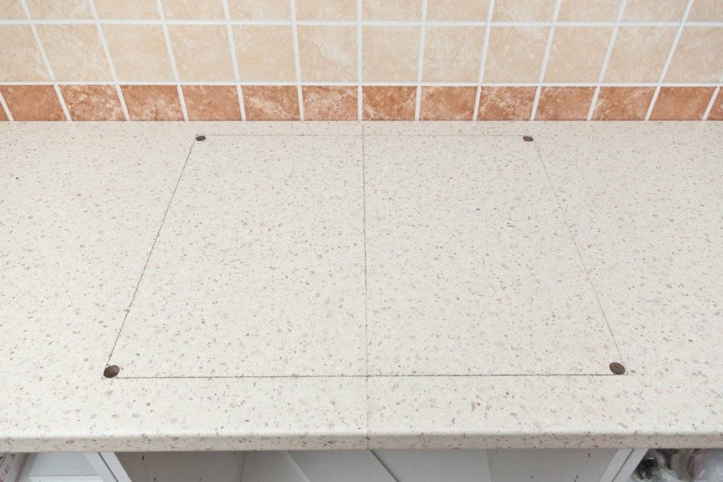 Опять же, не стоит забывать про меры предосторожности – подставка под вырезаемую часть рабочей поверхности будет совсем не лишней.