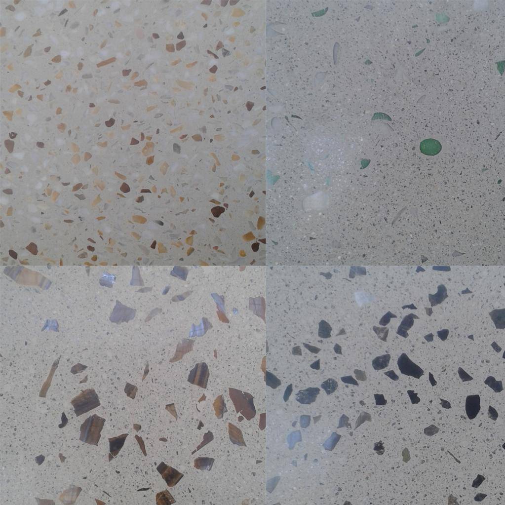 Связующим веществом является полиэфирная смола. В некоторых случаях сюда добавляют некоторые минеральные пигменты, металлическую стружку либо стекло – благодаря этим компонентам создаются особые оттенки, которые практически не встречаются в природе.