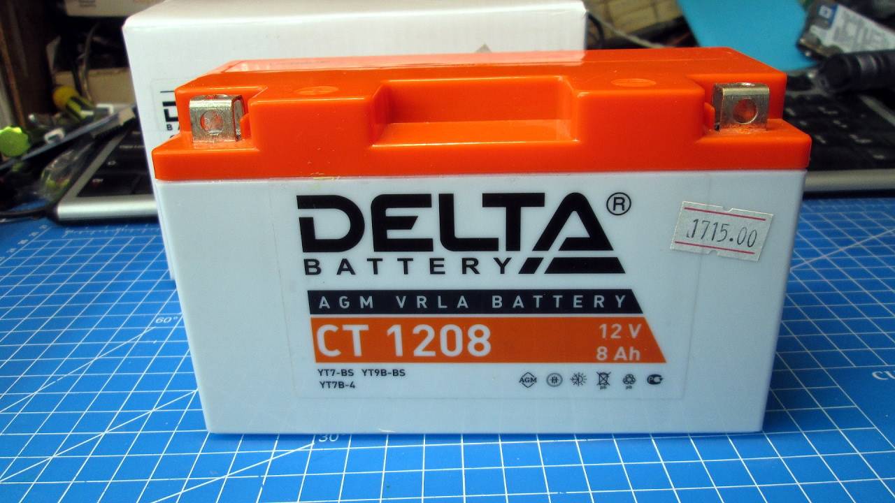 Обычный аккумулятор этой серии – Delta DT1208. Такие устройства обладают напряжением 12 В. При этом такие батареи выполняют относительно небольших габаритов. Их ширина составляет 6,6 см, длина – 9,7 см, а высота – 2,5 см. При таких показателях вес аккумулятора равняется 0,4 кг. Значение зарядного тока составляет не больше 100 мА.