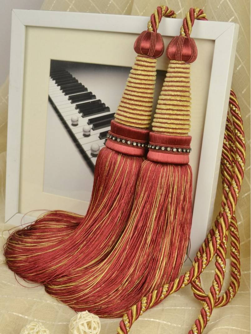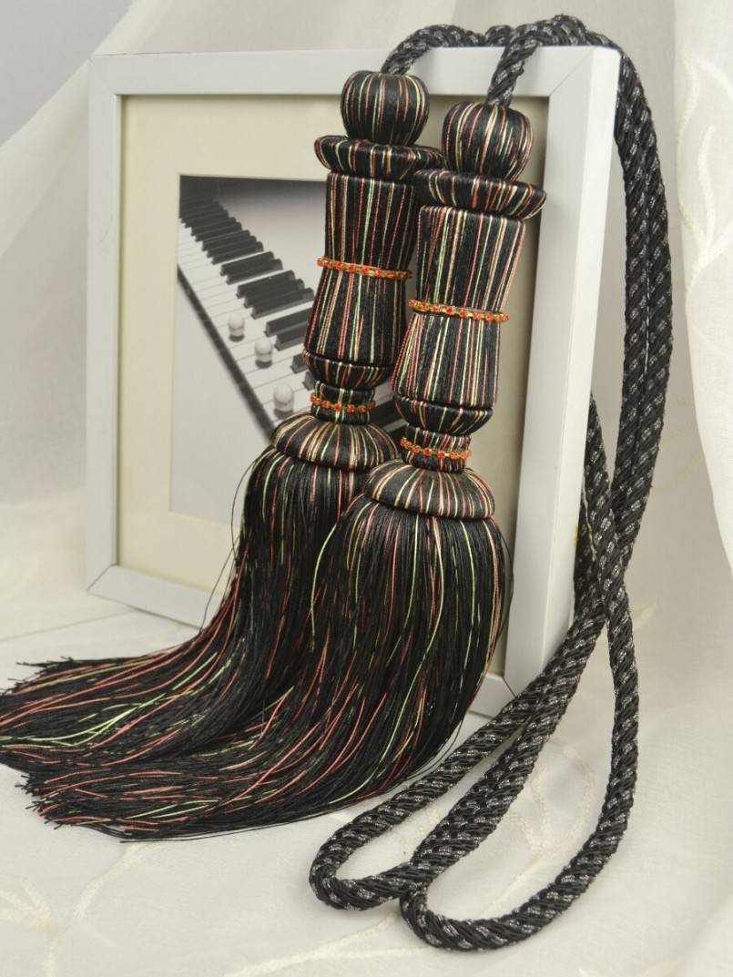 Также большой популярностью пользуются кисти, которые способны придать шикарный и законченный вид даже обычным занавескам. Их можно сделать своими руками, так как в магазине такие украшения стоят недёшево, а для самостоятельного изготовления они достаточно просты. В качестве бахромы для штор используется самая разная ткань. Например, хорошо подойдут нити для вышивания.