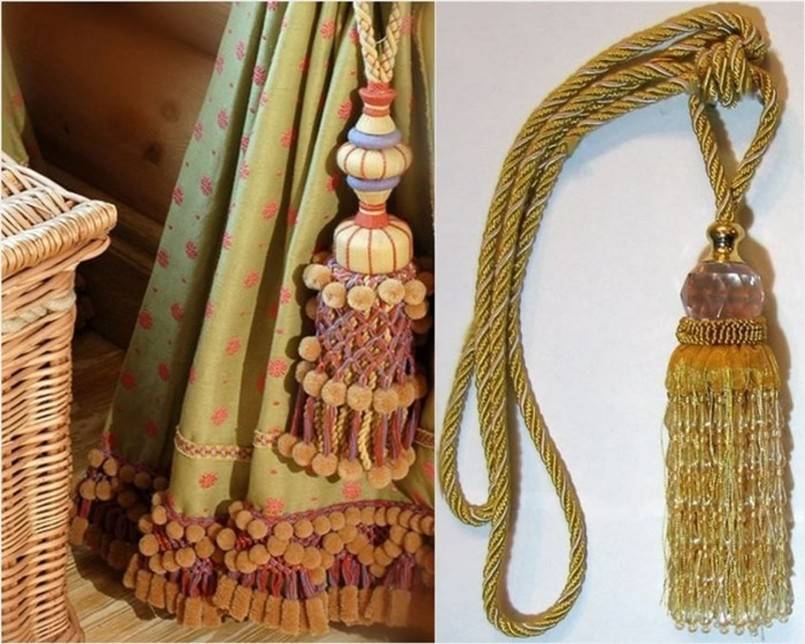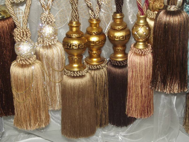 - Кисти. Отличаются благородным видом и статусностью. Гармонично строят отношения с дорогим текстилем – бархатом, шёлком, атласом.