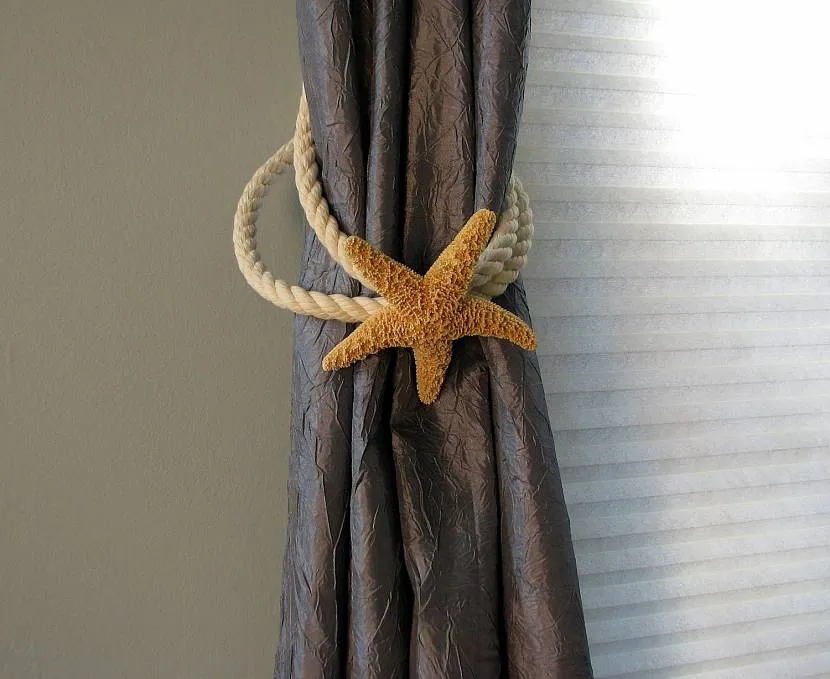 Подхваты-канаты, оформленные морскими звездами или декоративными ракушками, создают ощущение простора и свободы.