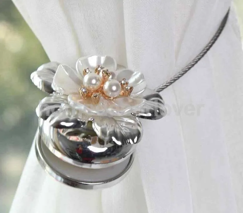 - Легкие портьеры (однотонные или с цветочным узором) требуют подхватов-шнурков, крупных заколок или магнитов с декором из бусин или цветов.