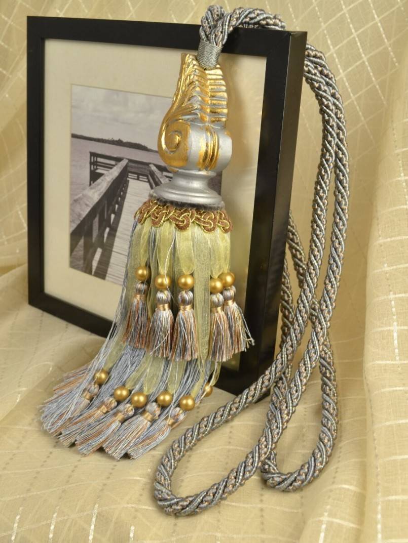 Средиземноморский. В комнате с намеком на морскую тематику уместно смотрятся плетеные фиксаторы, напоминающие канаты. Их можно дополнительно декорировать ракушками, морскими звездами, хрустальными и акриловыми бусинами, или декоративными безделушками в виде якорей.