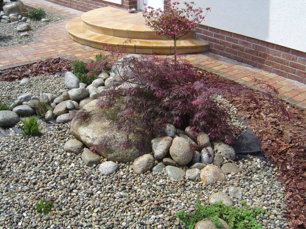 В рокарии, кроме камней, широко используют декоративную отсыпку – щебень, гальку, древесную кору