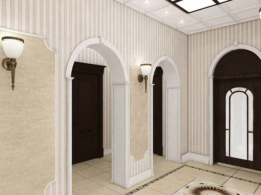 - Придать стильный вид арочной конструкции можно с помощью полиуретановых молдингов.