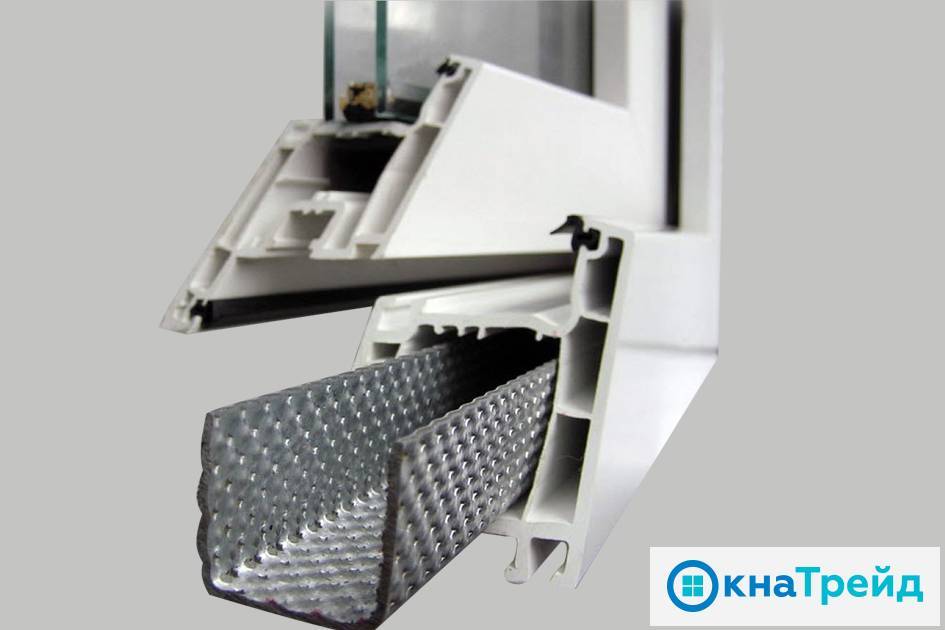 - Для повышения прочности применяют усиленное армирование из металла толщиной 2 мм и более. Такие профили чаще всего устанавливают в дверных конструкциях.
