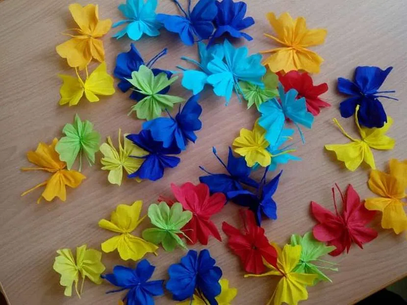 - Основная задача детских поделок бабочек — пробудить интерес к ручному труду, развить у детей мелкую моторику рук, работу с карандашами, ножницами и бумагой.
