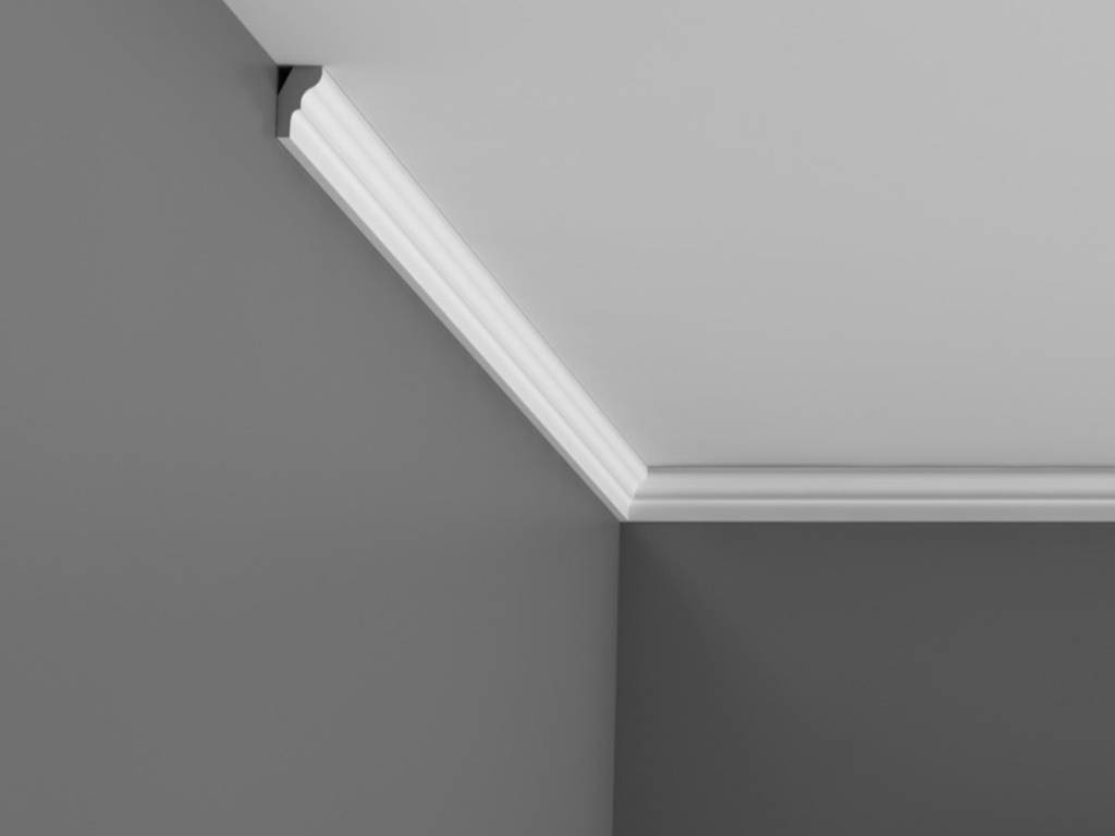 Эти материалы проще всего покрасить в тон помещению, они наиболее дешевые, прочные и практичные. Поверхность карниза может быть многоуровневой, плоской или рельефной. В продаже имеются и уже окрашенные, и белые багеты, которые можно при желании колеровать самостоятельно.