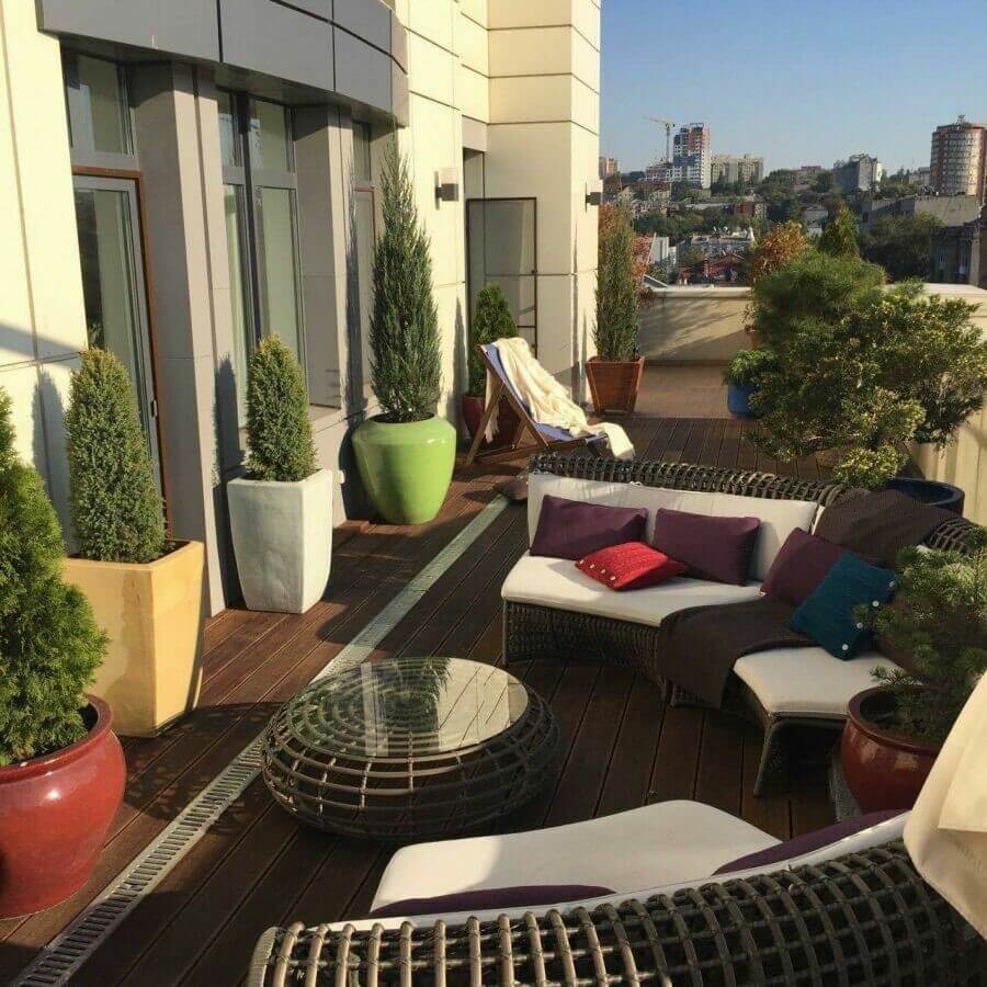 Такой парк на крыше весьма привлекателен не только в дорогих отелях. Общая зона отдыха способствует общению, знакомству людей, ведь люди часто даже не знают как зовут их соседей.