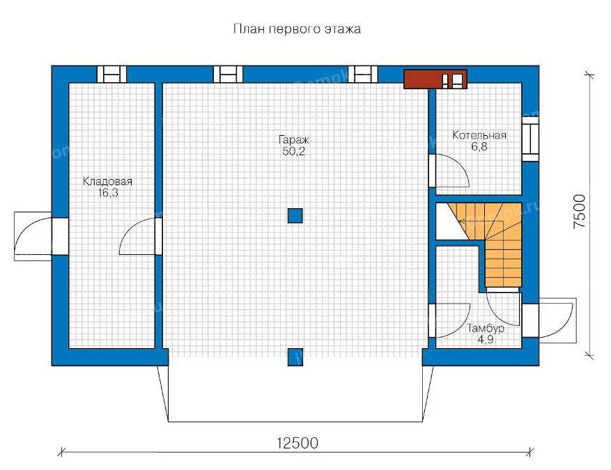 - вместительная кладовая, в которую можно попасть как из гаража, так и с улицы. Это пространство можно использовать для хранения инструментов, садового инвентаря или запасов продовольствия, при желании там можно организовать мастерскую;