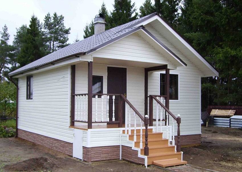 Пример одноэтажного дома с террасой и баней.