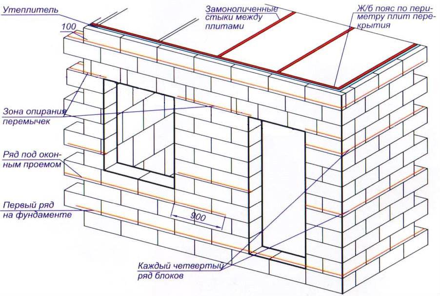 Кладку обычно упрочняют при помощи армирования. Для этого используют специальную армирующую сетку. Армирование защищает стены строения от деформации в случае усадки здания.