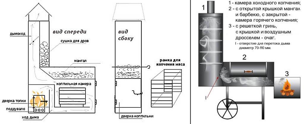 Чертеж мангала-коптильни горячего копчения