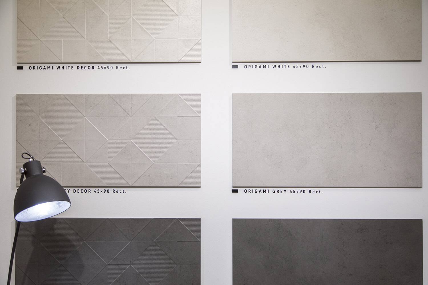 Коллекция Origami также выполнена в формате 45×90,1 см с текстурой цемента, но ее отличает декор, напоминающий сложенные из бумаги фигуры – оригами. Цвета данной коллекции: серо-бежевый, светло- и темно-серый.