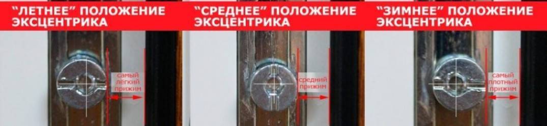 Такую же проблему может вызвать неправильно настроенный регулирующий эксцентрик (зимой выставлен летний режим). Механизм регулирует степень прижатия створки и в летнем положении прижатие слабее, чем в зимнем. На заданный режим указывает маркер, расположенный на эксцентрике.