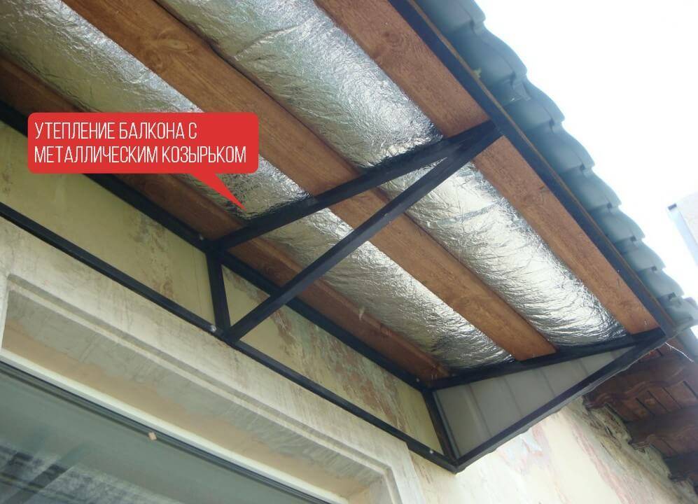 Утепление потолка балкона с металлическим козырьком
