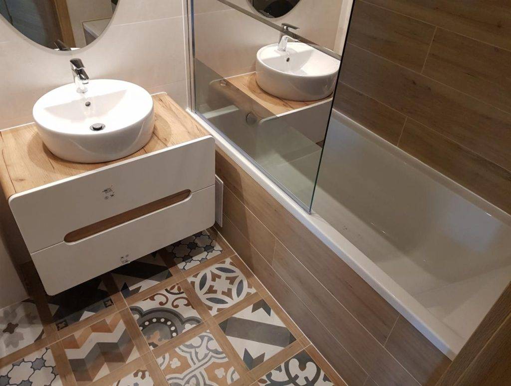 Широкоформатная керамика, клинкер, также подходят для современных ванных комнат, но есть, конечно, исключения. Однако мы не так давно отошли от правила, что большие плитки укладываются только в больших помещениях, а маленькие — в маленьких. Более важно тщательно продумать дизайн ванной комнаты, чтобы избежать случайного разделения стен и необходимости отделки многих плиток, что неприглядно и неэкономично