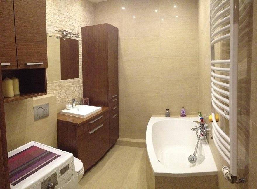 Выбирая материалы для отделки, надо иметь в виду, что необязательно останавливаться только на каком-то одном. Сочетание разных материалов дает интересные визуальные эффекты и позволяет зрительно увеличить небольшое помещение. Учитывая, что не все части ванной подвергаются одинаковой нагрузке, можно сочетать более устойчивые к влаге с обычными стройматериалами.
