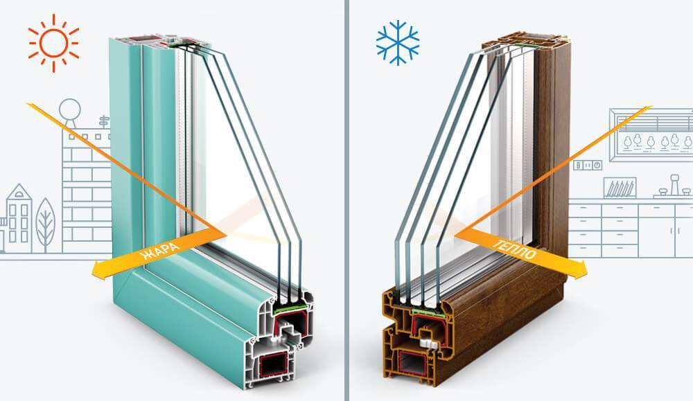 ПВХ – хороший теплоизолятор, профиль для оконной рамы и створок изготавливают многокамерным.