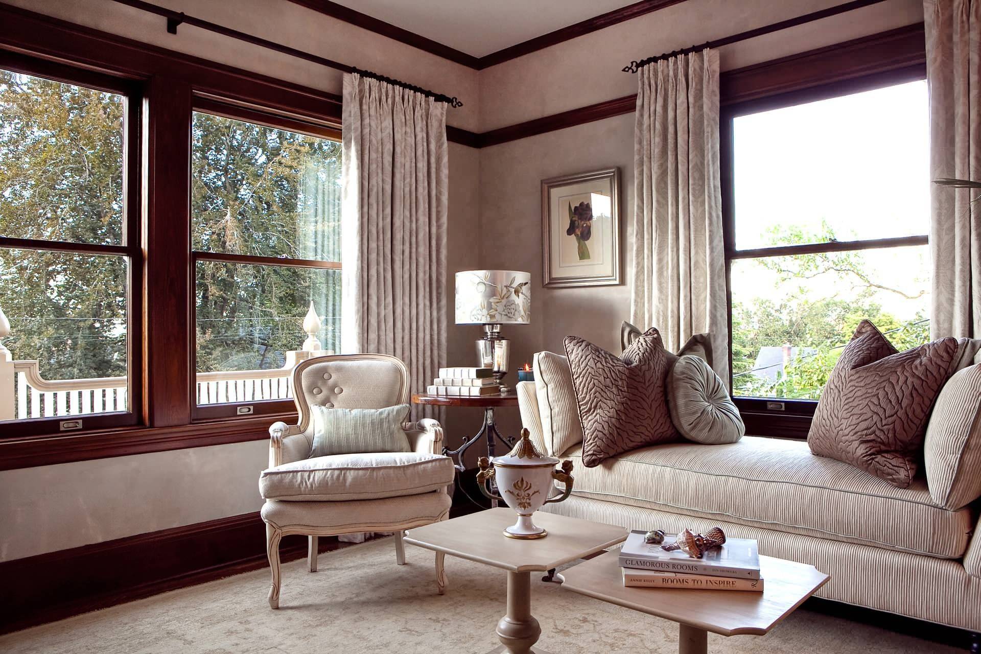 Пол в разных интерьерах комнаты может быть самым различным, но именно он может повлиять на то, как именно расположены занавески.