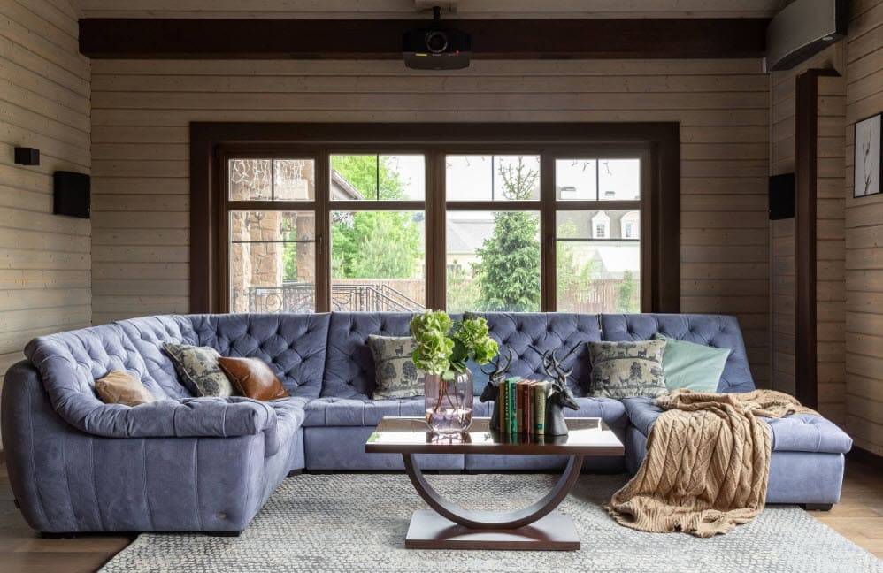 Как интегрировать черный диван в гостиную с деревенскими акцентами