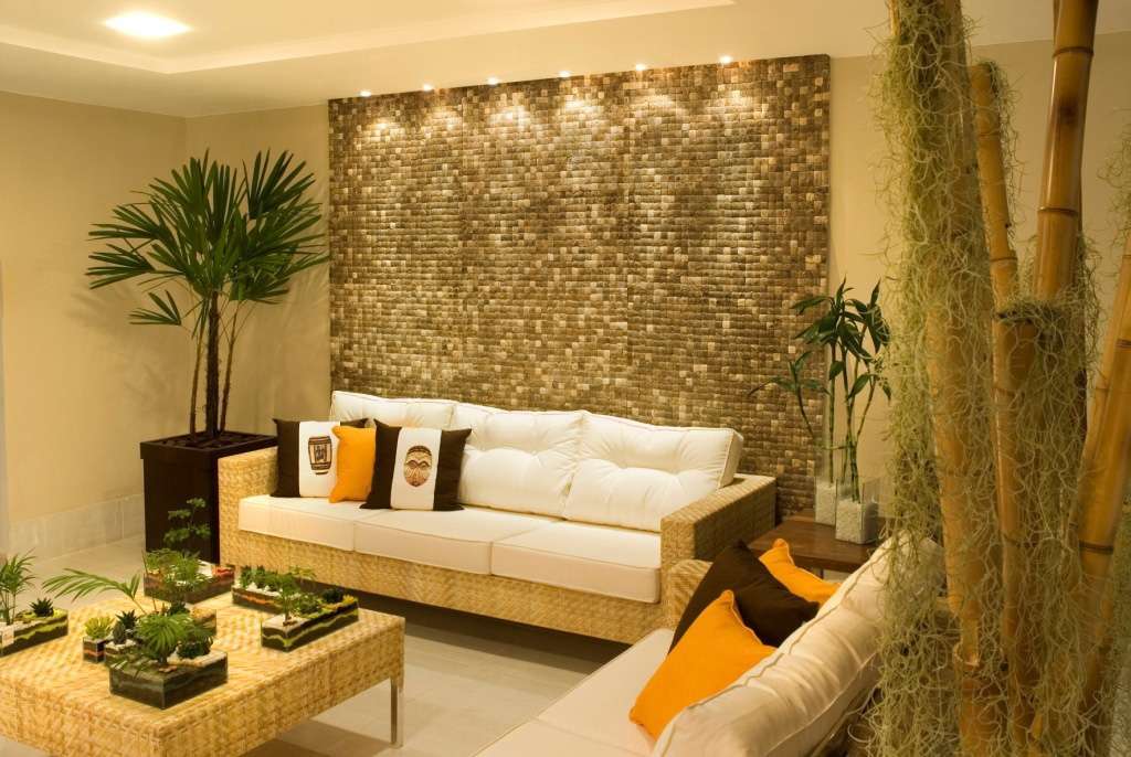 Наряду с камнем часто используется древесина. Нужно только помнить, что не каждый стиль способен выдержать такое оформление. Если не знаете особенностей применения данного материала, лучше посоветоваться с дизайнерами. Деревянный брус, фанера, вторичные древесные материалы в последнее время стали пользоваться популярностью из-за своей натуральности и экологичности. Стены будут «дышать» и давать тот необходимый воздух, которого так не хватает в городской среде, именуемой часто «каменными джунглями». Прованс, средиземноморский стиль, эко-стиль приветствует подобную отделку. Хорошим вариантом отделки станут деревянные рейки, например, в японском стиле.