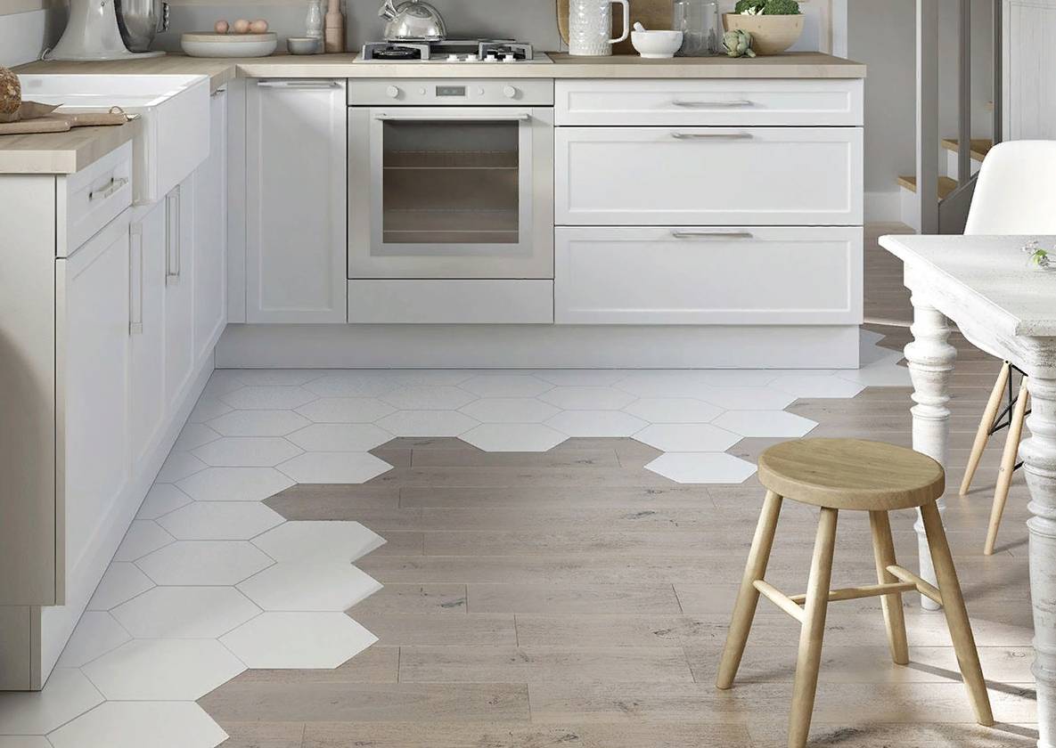 Есть несколько советов для эффективного сочетания плитки и ламината на кухне: