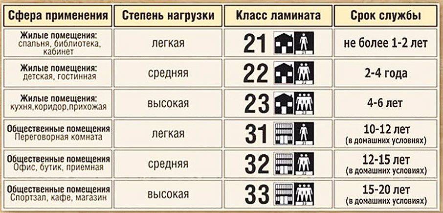 Предназначения определенного класса ламината вы можете узнать из таблицы.