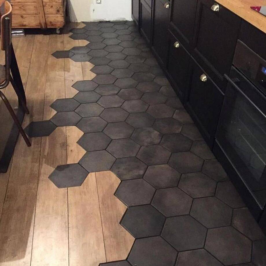 Используя комбинированный пол на кухне, вы убьете двух зайцев: создадите уютную атмосферу для отдыха и удобную зону для приготовления еды. Совмещение плитки и ламината уместно на любых кухнях, общая площадь которых свыше 6 м2.