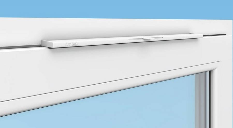 Вентиляционный клапан выглядит как узкий короб, который крепят в перекладину оконного проема. Внутренние детали, называемые перьями, отвечают за приток воздуха извне. При хорошей погоде устройство пропускает воздушные потоки в квартиру, а при сильном ветре перья блокируют попадание холода в помещение. В связи с тем, что вентиляция регулируется автоматически, открывать окна на проветривание утром и вечером не нужно.