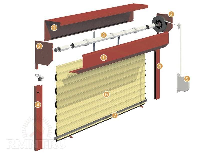 Основные элементы рольставни для дверей: