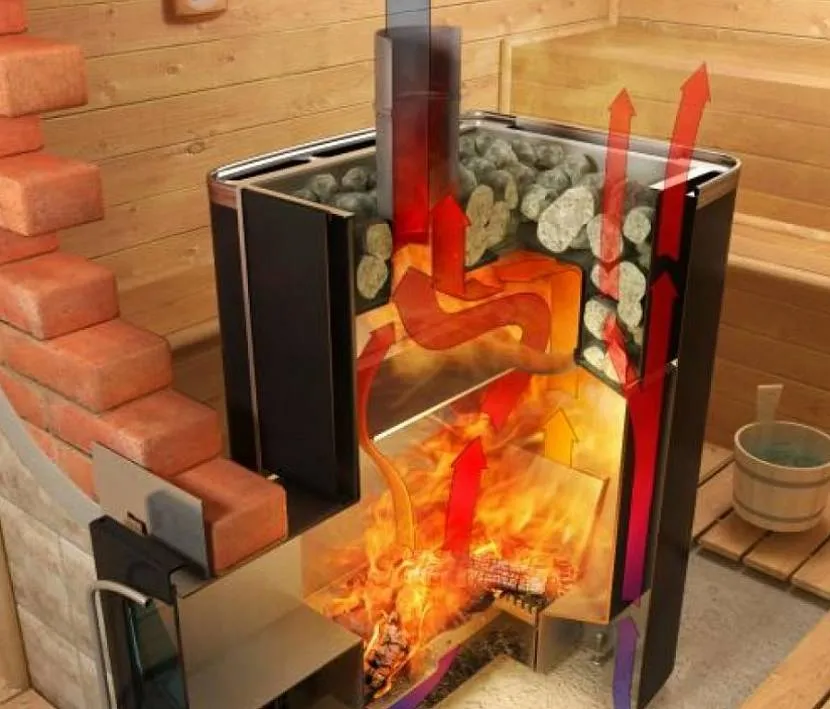 При решении учитывается используемый принцип работы: обычное и длительное горение, наличие встроенного теплообменника, тип каменки.