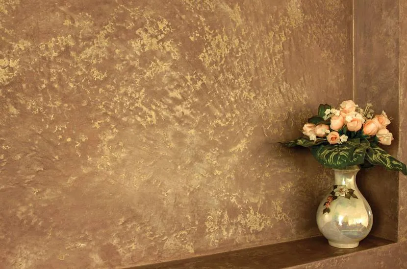 Способ отличается большим декоративным разнообразием. Привлекательность венецианской штукатурки в том, что она изначально прозрачная. Это позволяет экспериментировать со светом, добиваясь любых оттенков. Количество видов фактуры и цветов не уступает обоям. И также есть возможность для создания на поверхности различных узоров.