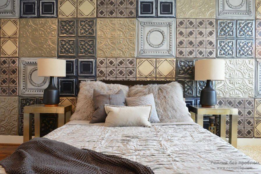 Плиточные панели изготавливают в виде квадрата со стороной 30-100 см. Между собой их соединяют за счет пазов, а на стену закрепляют при помощи клея. Комбинируя плиты разного оттенка, добиваются неповторимого узора.