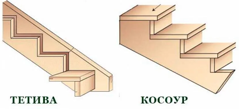В зависимости от способа крепления ступеней маршевые лестницы могут быть на тетивах, косоурах или больцах.