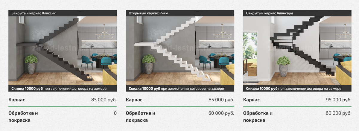 Стоимость зависит от размеров лестницы и сложности бетонных работ. Например, если заказать на заводе типовой железобетонный марш, какие ставят в многоэтажках — то это обойдется примерно в 15 000 Р. Но нужно еще учитывать доставку этой махины и оплату тяжелой подъемной техники для ее установки в доме.