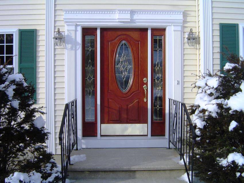 В отличие от дверей квартир в многоэтажных домах, входные двери частного дома должны иметь наиболее качественные характеристики. Они больше подвержены воздействию природных явлений. Ветер, дождь, снег и перепады температур делают своё дело. Для сложных климатических условий, можно приобрести трехщитовые деревянные входные двери из массива. Такие двери наиболее надежные, долговечные и при этом могут иметь привлекательный вид. Если над входом в дом отсутствует козырек, то стоит подумать о приобретении двери, облицованной влагонепроницаемой фанерой. И, конечно, выбирая входную дверь, стоит учесть стиль фасада здания.