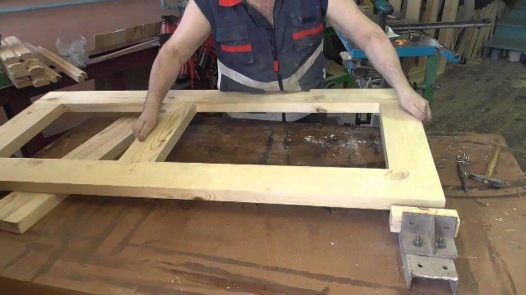 Создание дверной коробки — процесс более простой. Чтобы сделать ее самому, понадобятся только доска средней толщины и несколько брусков. Они соединяются между собой стандартным способом, в результате получается профильный брус. Именно из него собирается самодельная дверная коробка, выступающая основой во время установки.