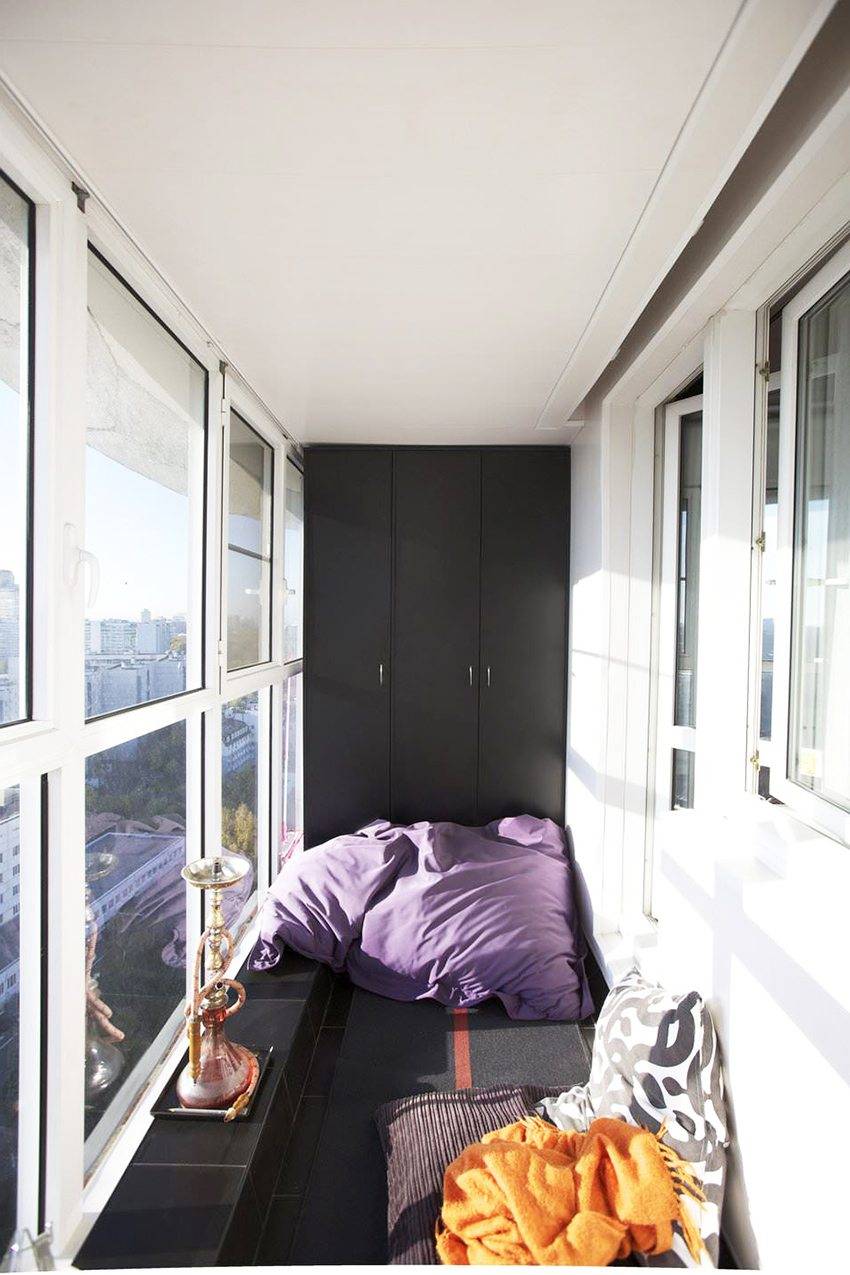 Редко кто решается обустроить на лоджии спальню: сюда могут попадать прямые солнечные лучи, все меры по обеспечению комфорта могут оказаться недостаточно эффективными для качественного сна. Но все возможно, и желание организовать на балконе спальную комнату может быть реализовано, хотя и с существенными затратами на эффективное остекление, утепление и отопление помещения.