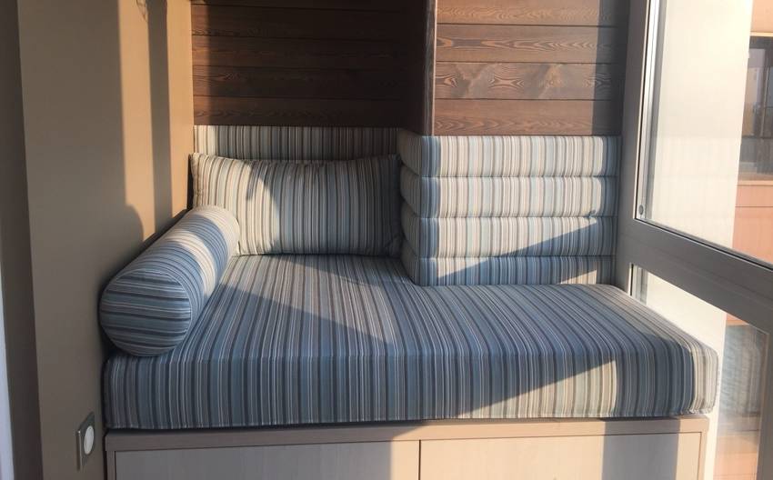 Очень удобно делать диван для балкона, в котором предусмотрены дополнительные ниши или ящики для хранения вещей. Перед началом работ следует определиться с разновидностью данных изделий: