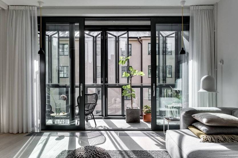 Типовой балкон редко может похвастаться внушительной площадью, а лофт-стилистика предполагает определенный простор. Разумным компромиссом в этой ситуации станет: