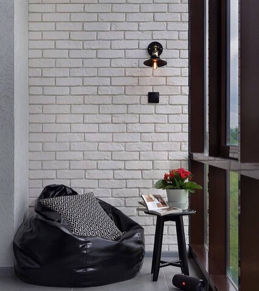 - Если вы задумали лофт-отделку балкона, то коричневый кирпич заменить на белый.