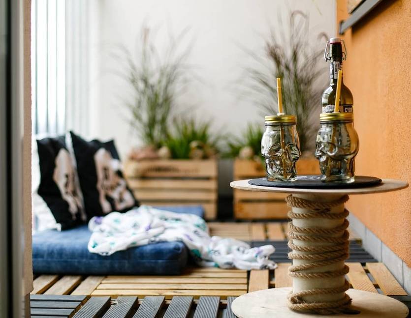 Интерьерные дизайнеры, специализирующиеся на создании балконов этого стилевого направления, убеждены в том, что вполне достаточно установить на нем скамейку либо ящик-сундук, а также откидной столик. На появившемся пространстве также можно соорудить конструкцию из водопроводных труб, имеющих незначительный диаметр.