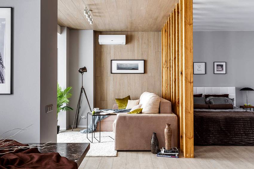 Разделение комнаты на гостиную и спальню с помощью перегородки