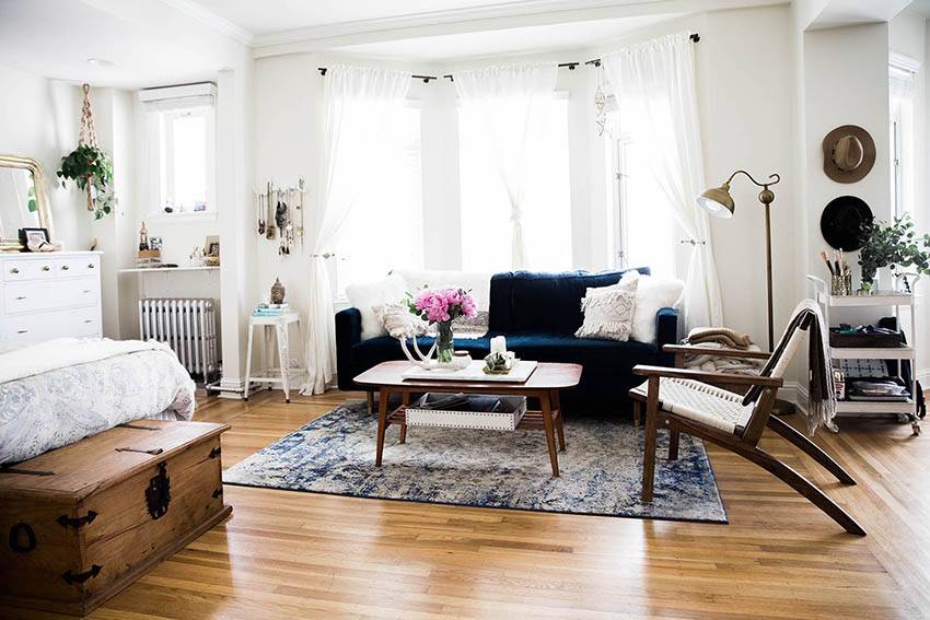 Начиная процесс совмещения гостиной и спальни в одной комнате, непременно продумайте стилистическое решение нового пространства. Это повлияет на не менее важные аспекты оформления, касающиеся меблировки и подбора аксессуаров. В принципе, в выборе стиля вы вольны и вполне можете опираться на собственное видение обстановки