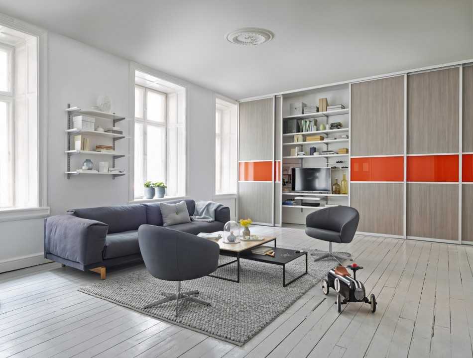 Проект современной гостиной со шкафом купе