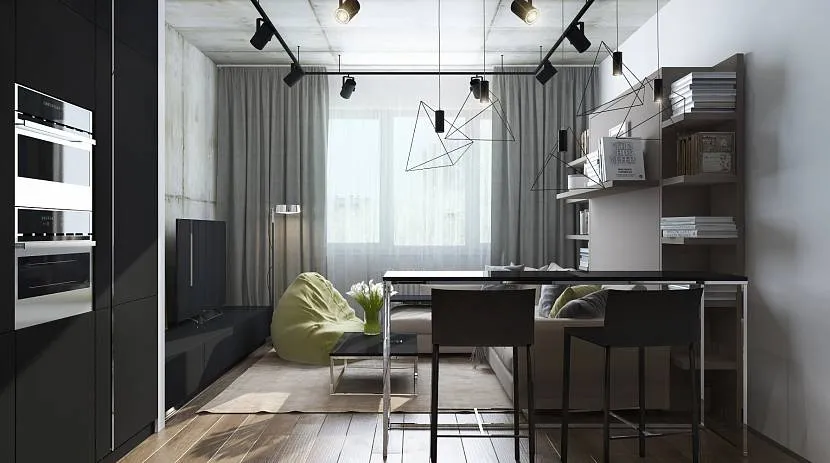 метров лучше смотрится минимальный набор мебели без лишних деталей.