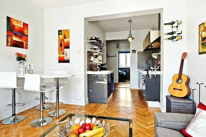 При этом вовсе не нужно на кухне и в зале клеить схожие обои или устанавливать одинаковое напольное покрытие. Такие зоны могут иметь разное декоративное оформление, но при этом они должны идеально сочетаться между собой.