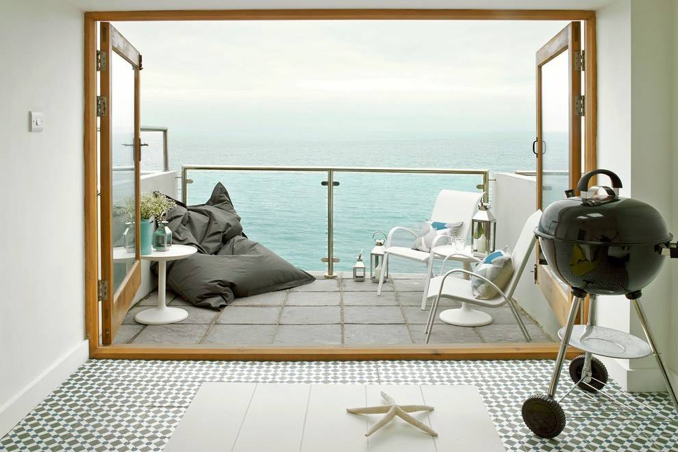 Если у вас открытый балкон, можно устроить здесь зону барбекю